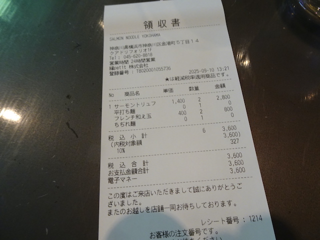 店名:SALMON NOODLE YOKOHAMA