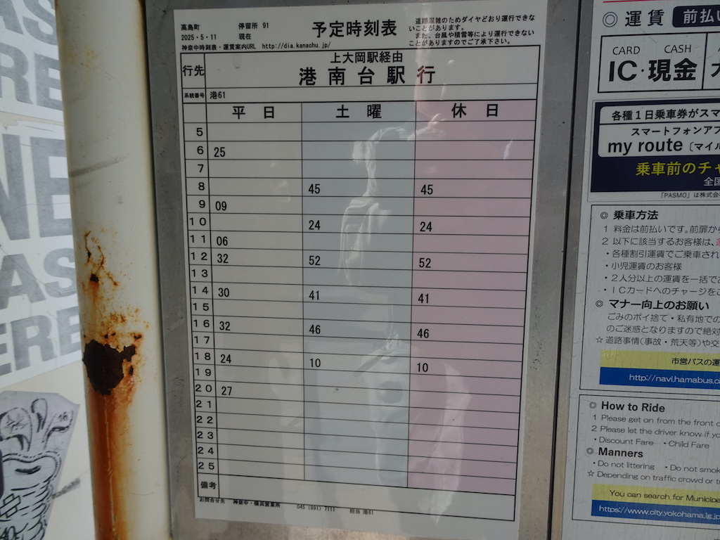 - 戸部駅前下りバス亭時刻表