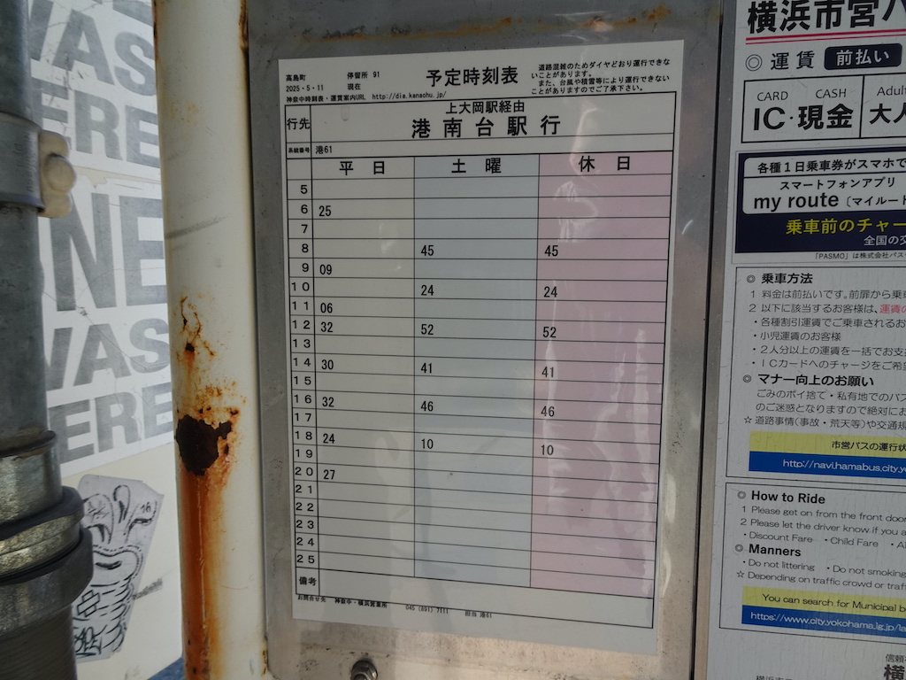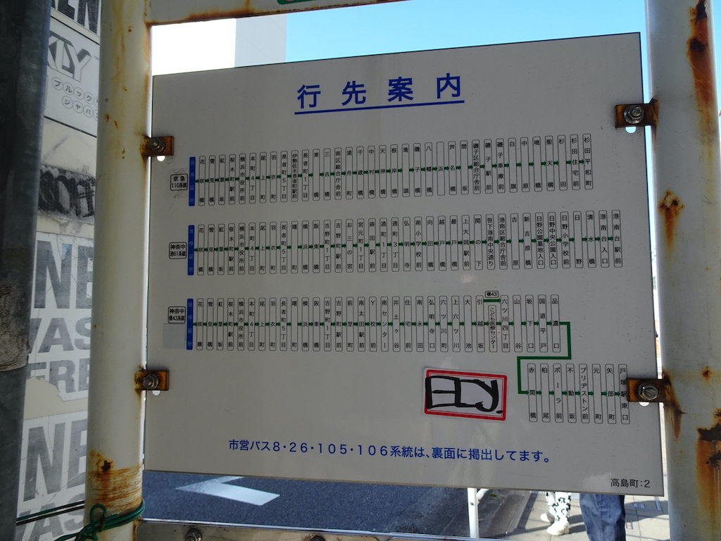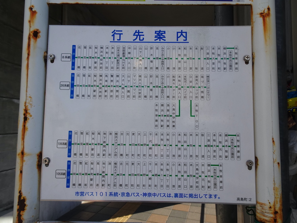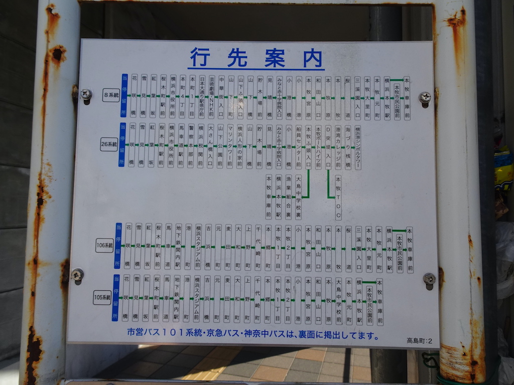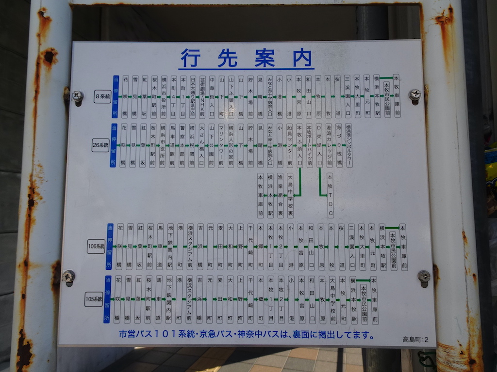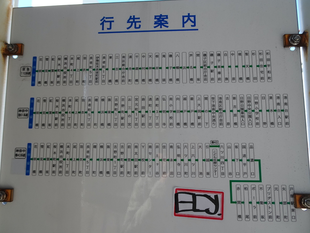 - 戸部駅前上りバス亭時刻表横浜駅方面