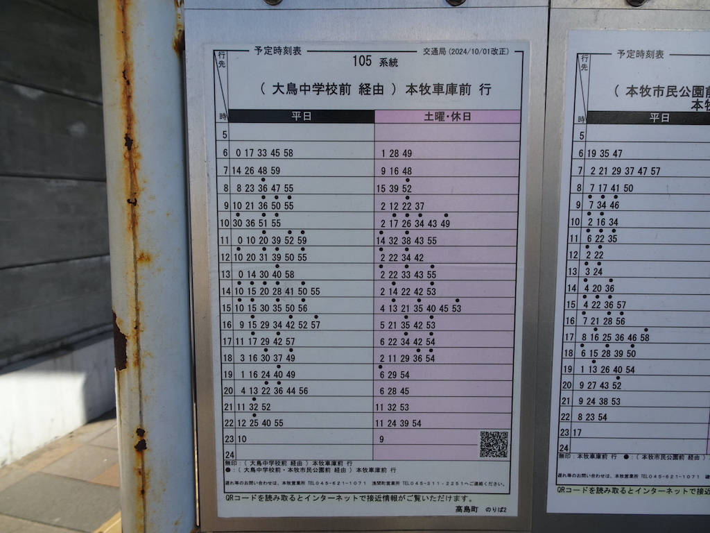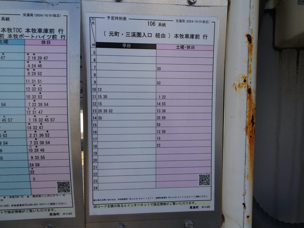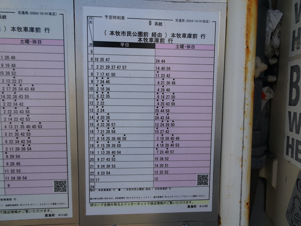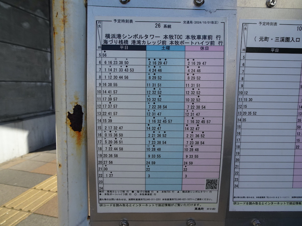 - 戸部駅前下りバス亭時刻表