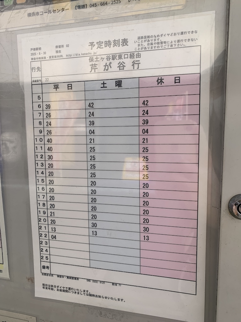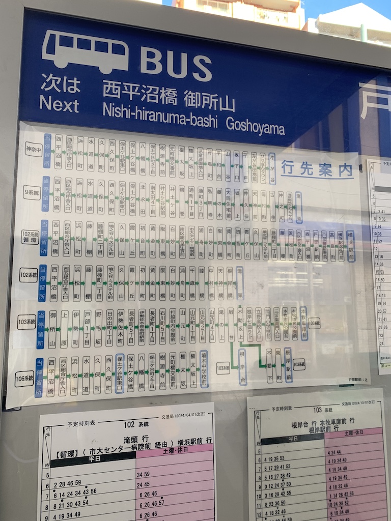 戸部駅前下りバス停時刻表を画像で確認です