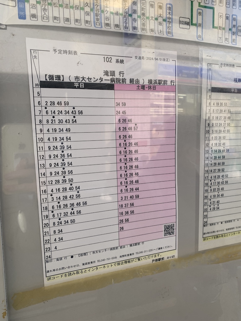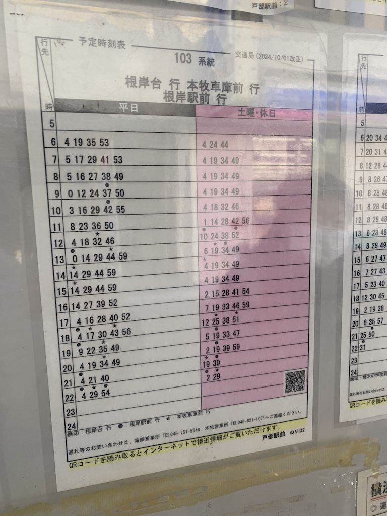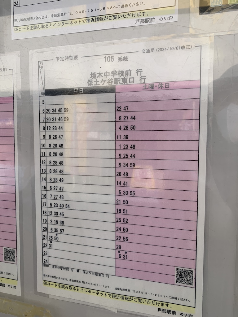 名称:戸部駅前下りバス停時刻表