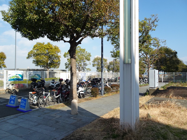 臨港パークの自転車とバイク駐輪場